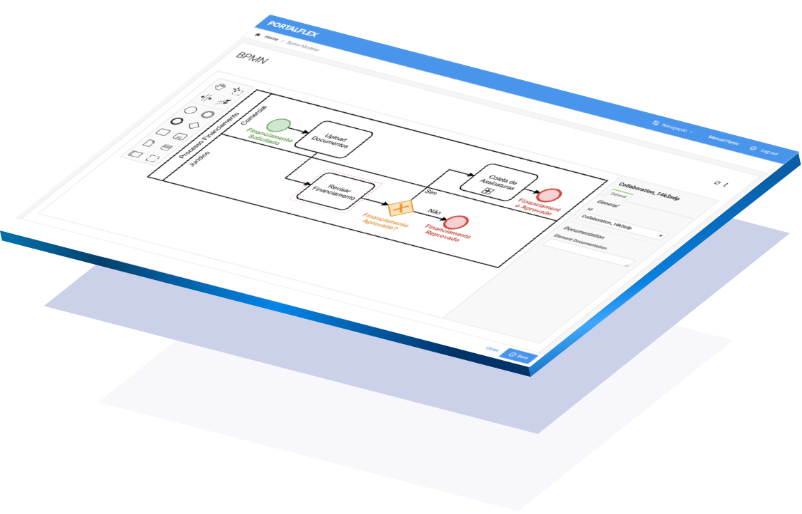 PortalFlex® utiliza notação BPMN 2.0 possibilitando desenhar rapidamente fluxos que envolvam qualquer tipo de Aprovação.